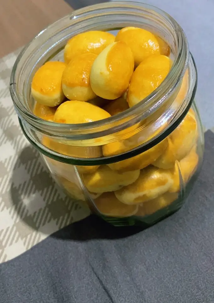 Masukkan keju,maizena,susu bubuk aduk kembali lalu masukkan terigu bertahap aduk sampai bs dibentuk